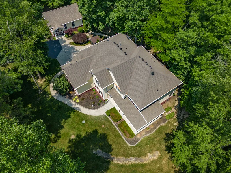 Luxury living with postcard-perfect views! The uncompromising quality of this 6466 sq ft custom built home is a rare find. Home renders 5 bedroom's, 4.5 bath's, soaring ceilings, gourmet kitchen, granite countertops, a massive master suite with California closets, cherry hardwood floors & much more! 2nd and 3rd bedroom share a jack&jill. Fully finished walk out basement is 2232 sq ft w/a wet bar, gaming rm, separate living rm, bedroom, full-bath & screened-in-porch. Out-building is an additional 1500 sq ft w/ 3 levels & a walk-out basement, it offers a separate-mini split for heating & cooling with 200 amp electrical & is drywalled. Easy to convert to in-law quarters. Meticulously maintained and sits on 3.34 wooded acres.