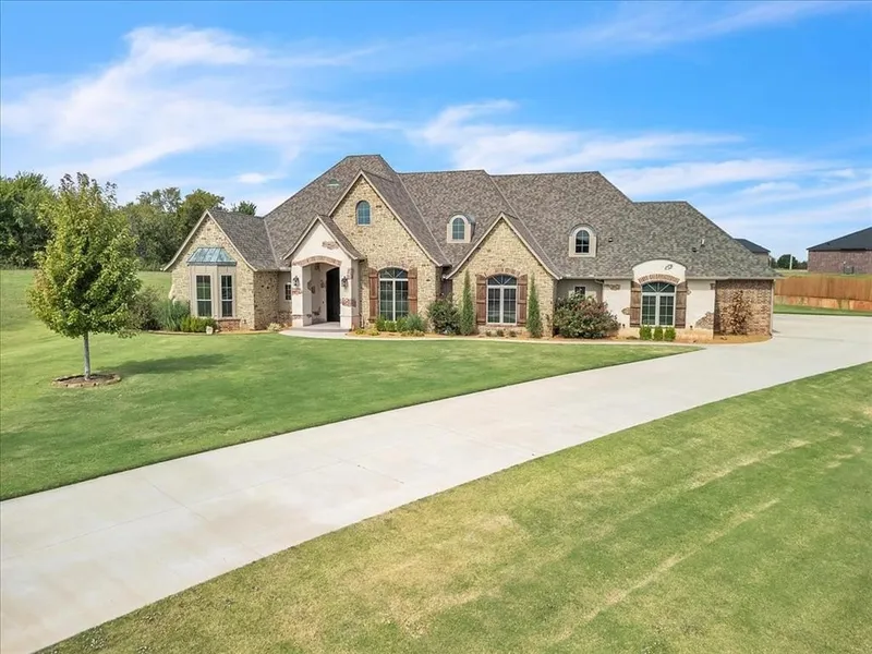 This home also includes premium amenities such as a storm shelter, 26KW whole-home generator, dual tankless water heaters, and two oversized 18’ garages with extended pads.