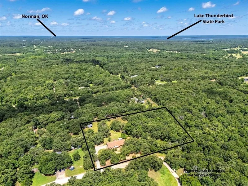 Welcome to peaceful country living on 4 wooded acres in this beautiful 3 bedroom, 2 bathroom home in Norman! Surrounded by mature trees and plenty of wildlife, this home offers privacy, space, and functionality as well as quiet serenity. The spacious interior features a large kitchen with ample cabinet and counter space and a breakfast bar, perfect for everyday living and entertaining. The primary suite includes a double vanity and private shower, along with a large closet. The guest bedrooms are serviced by an additional extra-large, double vanity bathroom with shower/tub combo and plenty of storage. The second living area is spacious and perfect for entertaining, or could be used as an additional bedroom or a huge office! Step outside to a covered patio overlooking the wooded acreage—with deer, turkeys and so much serene privacy, it is the perfect place to home and unwind in peace! The home also includes storage/shop buildings, a lean-to and a storm shelter for extra peace of mind. Located in a quiet rural area, yet only 15 minutes to OU, 25 minutes to Tinker AFB, and only 10 minutes to Lake Thunderbird. Enjoy the best of both worlds: peaceful country life with convenient access to schools, shopping, work, and recreation!