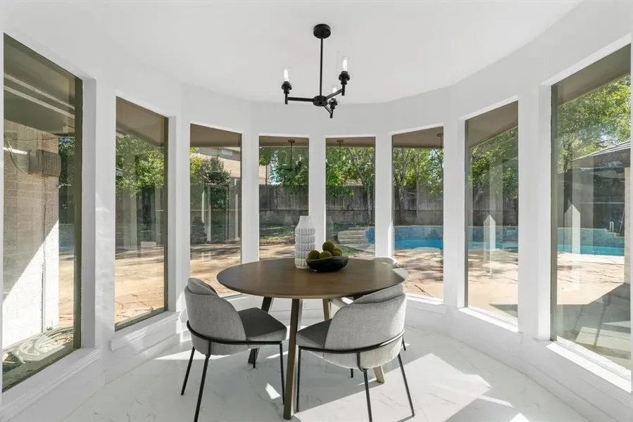 Nestled in one of North Richland Hills’ most beloved neighborhoods, Diamond Loch this thoughtfully updated home with delicate finishes is a show stopper. Start your mornings in the stunning breakfast nook, surrounded by floor-to-ceiling windows that frame peaceful views of the backyard and pool. The living space has cathedral ceilings with a beautiful exposed wood beam and chimney. Outside, your private retreat awaits with a sparkling pool and a wrap-around driveway leading to the back. But what truly makes this property special is the community. Diamond Loch is known for its close-knit feel and joyful neighborhood traditions — from over-the-top Halloween celebrations to magical Christmas light displays that draw visitors from all over the city. Just steps away from the walking trails, fishing pond and updated playground at the 14.5 acre Linda Spurlock Park.