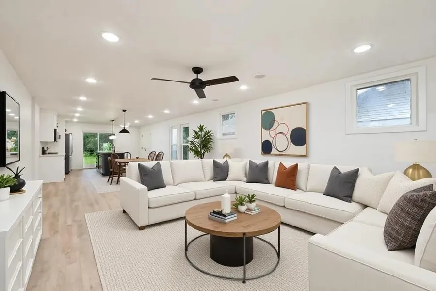 Inside, the open-concept layout showcases sleek modern finishes, brand new interior paint, and stylish touches throughout. The chef’s kitchen is the heart of the home, complete with new countertops, updated cabinetry, and stainless steel appliances—perfect for cooking and entertaining.