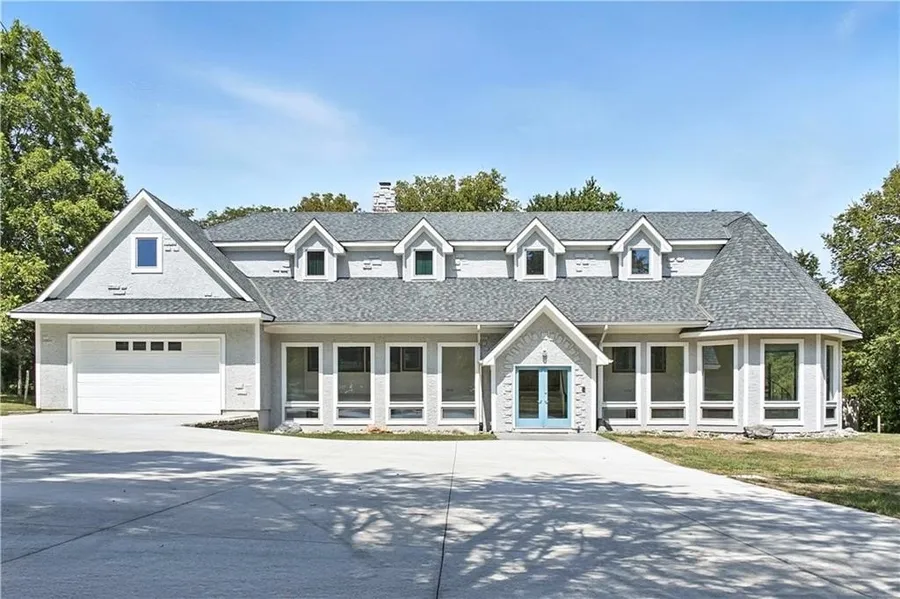 RARE OPPORTUNITY IN SOUTHERN JOHNSON COUNTY | 4.84 ACRES M/L & OVER 4,700 FINISHED SQ FT WITH BRAND NEW ROOF!!! Discover the perfect blend of space, style, and convenience with this stunning home nestled on nearly 5 acres—offering peaceful country living just minutes from all the amenities of the city! Main level welcomes you with a warm and inviting beamed Great Room featuring a striking see-thru fireplace. The GORGEOUS, fully updated Kitchen is a true showstopper, complete with soaring vaulted ceilings with skylights, quartz countertops, a large center island, built-in bench seating, pantry, and stainless steel appliances—ideal for everyday living or entertaining. Adjacent Dining Room flows seamlessly out to both covered and uncovered patios, making outdoor entertaining a breeze. Spacious Primary Suite is your private retreat with a bonus nook, walk-in closet and a beautifully updated en-suite bath featuring separate vanities and a walk-in shower. Upstairs, you’ll find two additional bedrooms (one with expandable attic access) and a full bath. Finished lower level offers incredible flexibility with a large Family Room, two more bedrooms, two full bathrooms and bonus entryway spaces perfect for greenhouse. office, crafts or hobby area. Need space for vehicles, tools, or toys? You’ll love the HUGE 40x24 Outbuilding, 4-car tandem garage, and brand new driveway—plenty of room for guests and gear alike! Whether you're looking for a private retreat, a place to spread out or room to grow—this one checks every box! All of this in an unbeatable Blue Valley School District location—just minutes from parks, the Overland Park Arboretum, premier shopping and dining, plus quick highway access for an easy commute! WELCOME HOME!