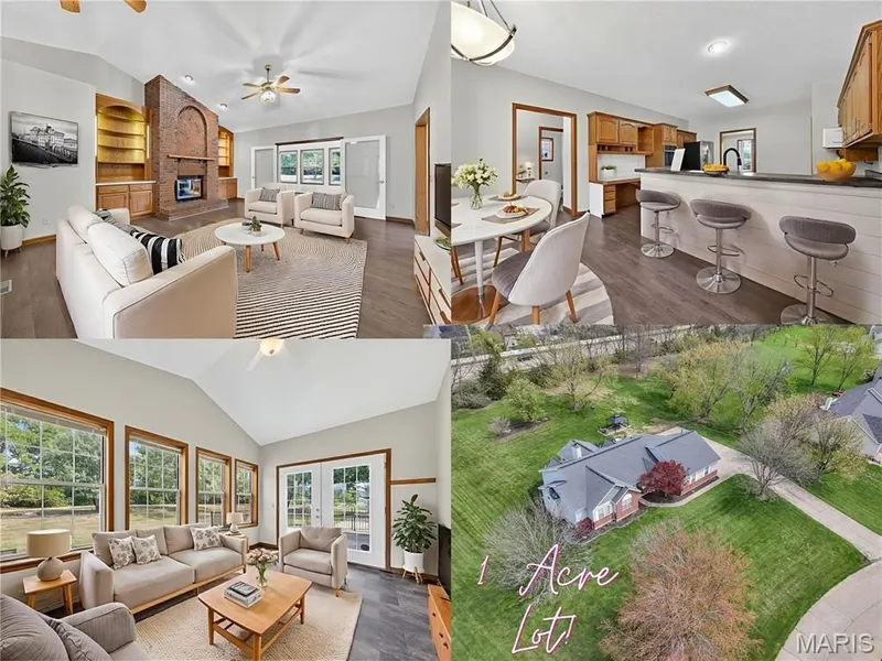 Charming 3-bedroom, 4-bath ranch on 1 acre in prime Dardenne Prairie! Recent upgrades include fresh interior paint, new HVAC, updated landscaping, and more. Vaulted ceilings create an open, airy feel, and the inviting 4-season room provides year-round enjoyment with scenic views. The finished lower level offers versatile living space perfect for a family room, rec area, or home office. An oversized 3-car garage with workshop area is ideal for storage and hobbies. Outside, the expansive lot with refreshed landscaping is perfect for entertaining, gardening, or relaxing in a private setting. Conveniently located near top-rated schools, parks, and shopping—this home is move-in ready and a rare find! Schedule your showing today and experience all this beautiful home has to offer!