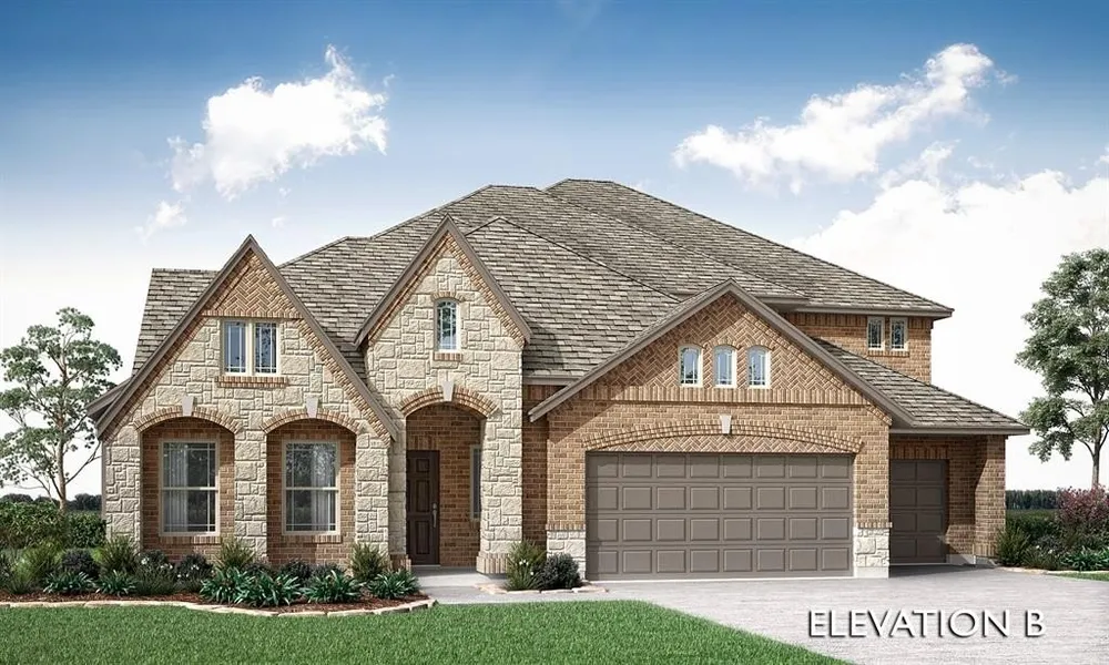 NEW & NEVER LIVED IN! Recently finished! Designed for both grand entertaining and private retreat, this 5 bedroom, 4.5 bath Primrose FE VI from Bloomfield Homes unfolds with rich finishes, generous room sizes, and a 3-car cedar garage that elevates the curb appeal. Past the upgraded Acme brick-and-stone façade and welcoming 8' front door, a dramatic rotunda entry makes a statement and warm laminate wood floors guide you into the home's interior. After passing a wide formal dining room framed by the staircase and catwalk upstairs, you enter the Family Room where a vaulted ceiling and 18' stone fireplace (wood burning) draw attention. Level 5 quartz countertops, built-in stainless steel appliances, pot filler above a gas cooktop, custom cabinetry lit underneath, and extra utility features create the ideal kitchen centered around an island! The adjacent breakfast area frames views of the covered patio, already plumbed for a gas grill and ready for al fresco evenings. Split bedrooms downstairs share a hall bath, while the 2 bedrooms upstairs each have their own private bath. Stay organized easily thanks to a mud room with tons of storage and a drop-off cabinet, a laundry room with second sink and upper cabinets, a huge Primary Suite closet that extends underneath the stairs, a buffet at the breakfast nook, and built-in shelving throughout! Upstairs is all about entertainment, with a large Game Room and a fully wired 7.1 surround-sound Media Room. Outside, full gutters, holiday-ready exterior light package, and professional landscaping finish the polished look. Are you ready to make everyday living feel like a custom experience? Visit Bloomfield at Stone River Glen to learn more.