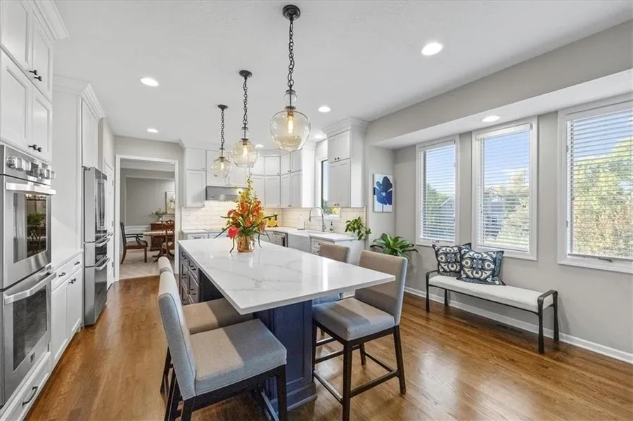 Inside, the newly renovated chef’s kitchen features quartz countertops, 10 ft. single slab quartz island, stainless steel appliances, a custom pantry with pullout drawers, and generous prep space- perfect for hosting dinners or weekend entertaining. The open layout flows into a spacious main living area, private home office, and light filled dining spaces. Upstairs, the expansive primary suite offers a spa inspired bath and walk-in closet. The fully finished walkout lower level features a full wet bar and ad...