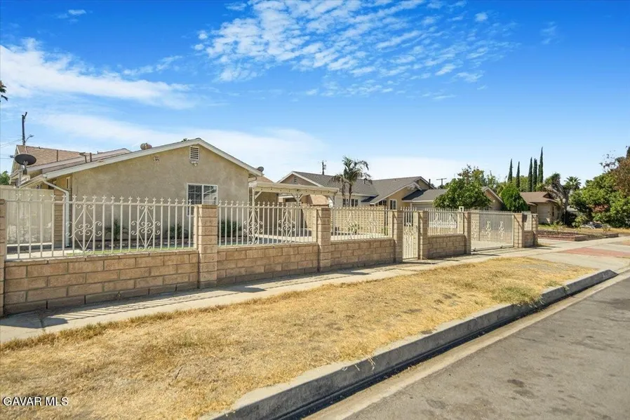 Welcome to this versatile 4-bed, 3-bath home offering 1,402 sq ft of well-designed living space on a generous 6,001 sq ft lot. Step inside to a bright living room centered around a classic brick fireplace, with recessed lighting and hardwood floors leading into a spacious dining area and galley kitchen featuring rich cabinetry, granite counters, and a full suite of appliances. Freshly painted with recently updated bathrooms, this home is truly move-in ready. Beyond the main living areas, the property offers tremendous flexibility: the garage has been converted into an addition with permits, creating a self-contained studio with its own bathroom--perfect for extended family, guests, or rental income. Outdoor living is equally inviting, with a large paved patio under a covered pergola strung with lights, low-maintenance turf, and ample driveway parking behind a secure gate. The home also f...