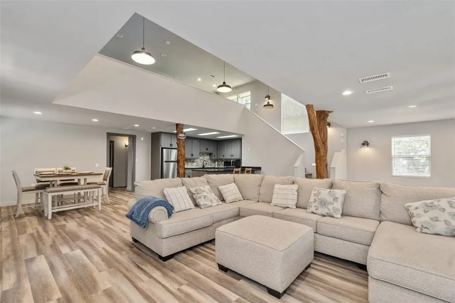 Welcome to your own lakeside retreat that offers breathtaking views of the lake! Beautifully renovated throughout on 2 lots with community boat launch. Home features a huge open floorplan with room for two Living areas and a Formal Dining. Kitchen has granite counters, beautiful brick wall and backsplash, breakfast bar, farm sink. Decorative lighting, luxury vinyl flooring and 2 inch blinds throughout. Accent woodwork for columns. Living and Formal Dining lead to a balcony. Downstairs has two additional bedroom and bath with a pedastal sink and walk in closets. Spacious laundry room has room for freezer or additional refrigerator. Upstairs has a gameroom area, and huge master ensuite with a private bath and granite vanity. Additional bedroom upstairs has walk in closet and open concept with room for multiple beds or a bunkhouse theme. The is also an upstairs balcony. This is a great hous...