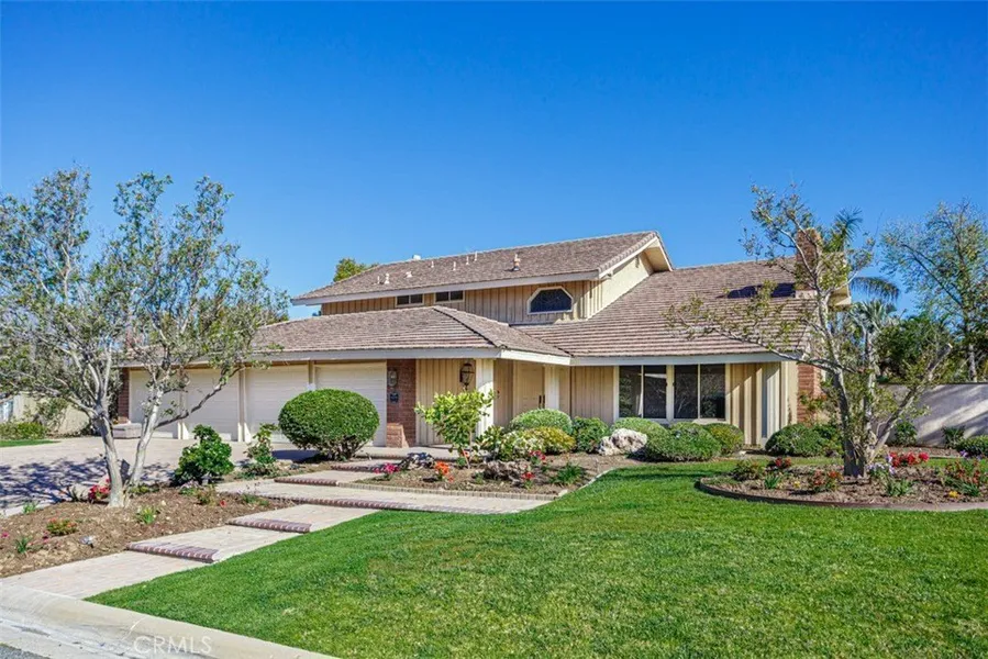 Beautiful home tucked away in a hidden cul de sac, entirely remodeled with new paint,new flooring, appliances,refrigerator, baths all upgraded, lighting upgraded, new kitchen counter tops, Show beautiful. The backyard is a paradise with many valuable fruit trees, roses, and high quality plants. Gated access in the rear of the property. Rare four car garage . separate storage house on side of property (no bath)