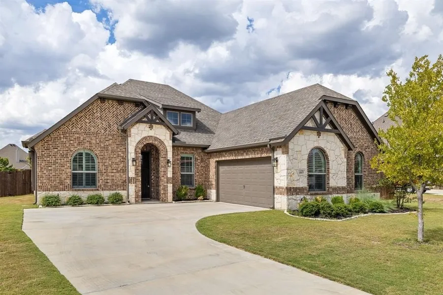 Welcome to 2117 Pepperdine Drive! Built in 2021, this beautiful 3-bedroom, 2-bath home with a dedicated study offers modern design and thoughtful details throughout. The open-concept floor plan showcases a stunning kitchen with an oversized island, granite countertops, and gorgeous wood flooring flowing seamlessly into the living room with its striking stone fireplace. The spacious primary suite features dual sinks, a separate shower, a large soaking tub, and a TEXAS-sized walk-in closet that’s truly massive. Two additional guest bedrooms and a private home office provide plenty of space for everyone. Step outside to enjoy a quaint covered patio overlooking a large backyard—perfect for relaxing or entertaining. Located in Weatherford ISD, this home combines style, comfort, and convenience!