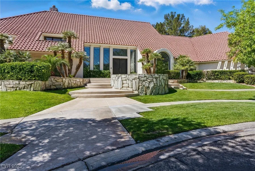 Outstanding 7,800 Sq. F custom estate, recently renovated, .60 acre corner lot at the end of a treelined cul-de-sac street in the premier guard-gated custom home community of "Quail Ridge Estates" in Henderson. Grand foyer with curved staircase, huge open kitchen with white cabinetry, stone counters, Wolf appliances, center island with seating, eat-in kitchen. Bright and Open layout with dramatic 25ft. ceilings, floor-to-ceiling stone deatils, glass sliders to access the huge yard, opulent finishes accented in 7 new bathrooms. Primary suite encompasses the entire 2nd floor with 3 balconies, fireplace, sitting area, spa shower, free standing tub, separate vanities, make-up desk, & 2 walk in closets. Lower level offers, 6 en-suites, media/game rooms, glass encased gym, and new energy efficient HVAC units. Paid off Solar System, built-in security cameras, and Ethernet port installed in all ...