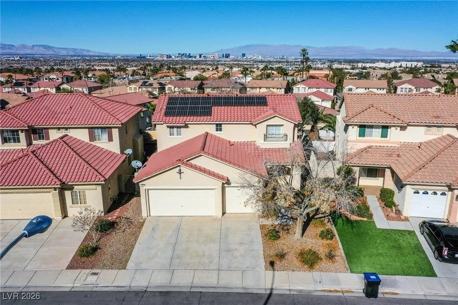 The spacious primary suite includes a private balcony w/ Strip & mountain views and a separate sitting or dressing area. Owned solar system with approx. 20 years remaining on warranty. Located in Seven Hills, a well-manicured community offering parks, walking and biking trails, tennis, basketball & soccer, all within walking distance.