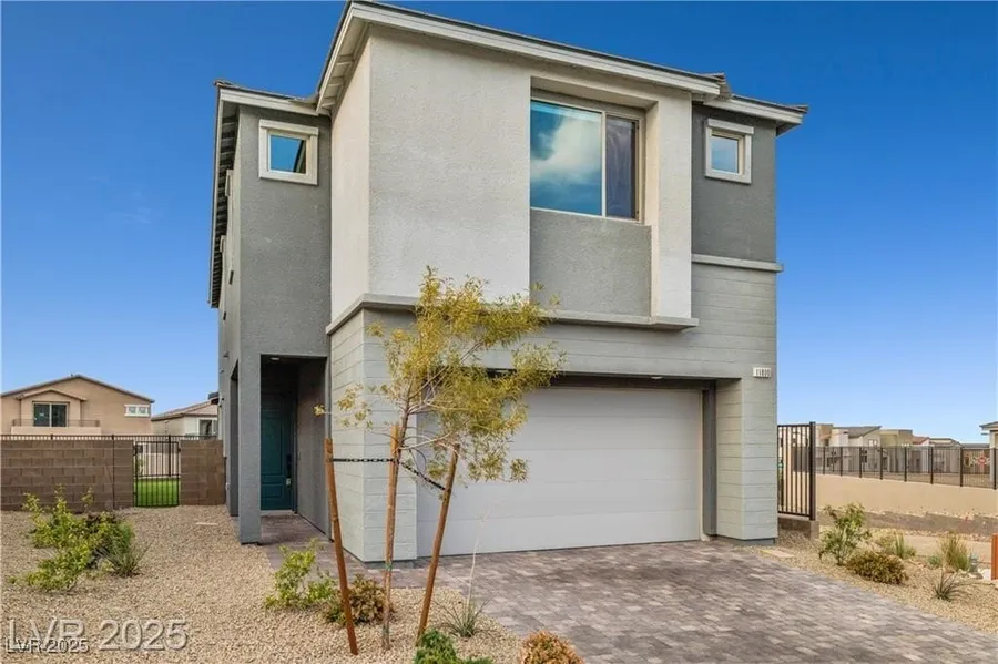 Discover contemporary luxury in this beautifully designed 4-bedroom, 3-bathroom home in Summerlin. Built in 2023, this 2,460 sq ft residence is set on an oversized lot with NO REAR NEIGHBORS! OVER $140,000 in upgrades. Inside, the home features an open-concept layout with high-end finishes, including brand-new paint throughout. The kitchen is a showstopper, with quartz countertops, premium appliances, and a spacious island—perfect for hosting gatherings. The living and dining areas are filled with natural light, thanks to large windows. The luxurious primary suite boasts a large walk-in closet and private balcony with majestic views of the mountain and the strip and downtown, while three additional bedrooms provide ample space for family or guests. The oversized lot offers endless possibilities for an outdoor retreat. Located in the highest gated community in Summerlin, a short drive away from a myriad of food spots or shopping. This is modern living at its finest!
