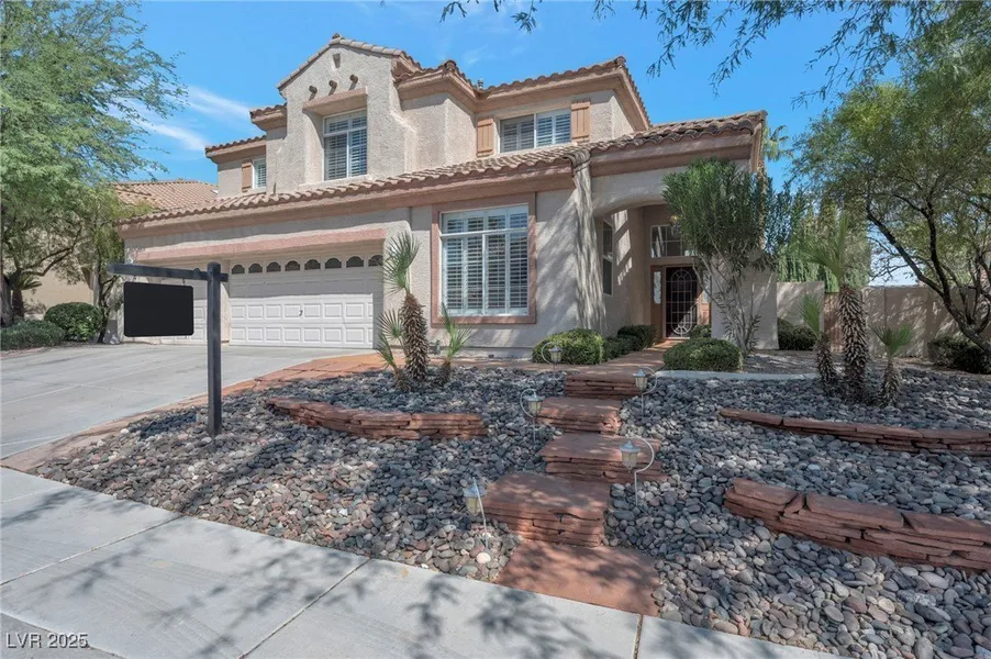 VIEW lot under 800k, PRICED TO SELL*Spacious 5-bed home of well-designed living space nestled in Summerlin gated community*Sits above walking paseo providing privacy & sweeping views w/no rear neighbor*Formal Living & Dining w/soaring ceilings & striking two-way staircase connecting Foyer, Family Rm & Upper Level*Family Rm w/surround sound & features Wet Bar w/seating ideal for entertaining*Large Kitchen complete w/island, stainless appliances & direct access to backyard for seamless indoor/outdoor gatherings*Generously expanded downstairs bedrm w/ensuite bath makes a perfect Next-Gen suite, private office or guest retreat*Upstairs Family Rm w/surround sound, wired for projector & incls 120” wall screen for the ultimate Home Theater/Game Room*Secondary bedrms are thoughtfully separate from the spacious Primary Suite & it's private balcony w/majestic views*Backyard paradise w/pool & waterfall spa-remodeled 2021, Built-in BBQ, Coverd patio w/fan, large turf area & 3 sheds*Newer HVAC 2024