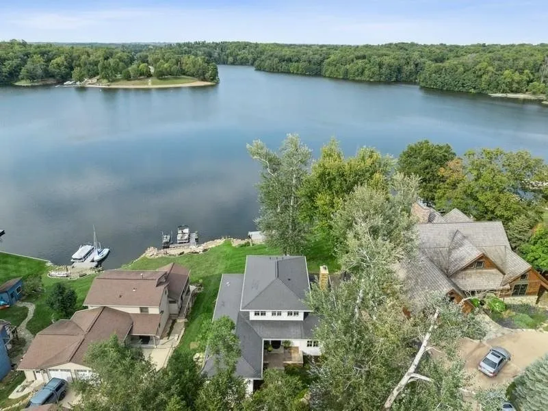 GREAT ESCAPE to a glorious, LAKE MACBRIDE waterfront property with unobstructed lake views. This dreamlike, custom-built 2011 home capitalizes on the mesmerizing panorama with large windows throughout, expansive deck, stone patio, fire pit and balcony. Excellent construction and welcoming ambience with warm-toned wood flooring, white painted crown molding, earth-tone paint palette, impressive gas fireplace with stone surround and reclaimed wood mantel, french doors and artistic custom steel staircase. The gourmet kitchen is appointed with abundant cabinetry and counters including new quartz island with refrigerator drawers, Sub-Zero refrigerator, Bosch dishwasher and outstanding walk-in pantry room with custom cabinetry. Perfect entertaining created with the open floor plan between kitchen, dining and living areas and access to deck. Lovely views are experienced every morning from the private upper ensuite primary bedroom with balcony and adjoining bathroom with tiled walk-in shower, dual vanities and soaking tub. The walk-out lower level has a family room with full wet bar, two additional bedrooms and laundry room with outside access. Ultimate lake lifestyle with incomparable vistas, lovely grounds with graceful mature trees and private dock, right out your backyard.