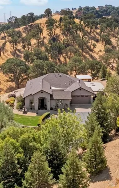 Escape to your private country retreat just a few miles from downtown Vacaville. Nestled on 6.23 acres at the end of a private drive, this 3,500 sq. ft. custom estate combines sweeping views, unmatched privacy, and elevated living. With 4 bedrooms and 4 bathrooms, the residence has been thoughtfully upgraded with rich hardwood flooring, fresh designer paint, quartzite kitchen counters, a custom island, and upgraded fixtures. View the countryside through Premium Simonton dual-pane windows. The open-concept design flows seamlessly, offering refined elegance for both everyday living and sophisticated entertaining. The family room centers around a striking gas fireplace with stone surround, while the primary suite offers its own gas fireplace for cozy winter nights. Outdoors, a true entertainer's paradise awaits. An outdoor kitchen with Blackstone grill, granite counters, ice maker, and ceil...