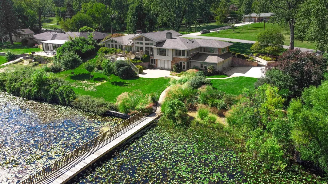 STUNNING custom walk-out ranch on beautiful Long Lake, comprised of NINE LOTS (1.25 acres) with a private tennis court, dock & detached 3-car garage (plus attached 3-car garage with a work shop). Summer vacation never ends when you're enjoying the tranquility of life on the lake every day! The home is absolutely breathtaking, as the brick-paved walkways & tasteful landscaping welcome you to the covered front porch & into the foyer/open-concept main level, where durable hardwood floors and vaulted cathedral ceilings flow throughout, not to mention the panoramic views of the lake you'll be spoiled with daily! The fireplace in the living room makes for the perfect spot to cozy up with a good book this fall before making your way into the gorgeous eat-in kitchen, boasting all high-end appliances (including a Viking gas cooktop, Sub-Zero fridge), granite countertops, ceramic tile flooring & a skylight! Both the adjacent formal dining room (built-in shelves) & sprawling sun room (tray ceiling, ceramic) offer views of the lake, while two spacious bedrooms down the hall both feature attached baths, including the stellar master with vaulted ceiling, lake views, HUGE 12x11 walk-in closet & lovely bath en suite with jetted soaking tub & walk-in shower! An office, laundry room, full guest bath & half-bath round out the main level, while the FINISHED basement affords plenty of extra living & entertaining space, thanks to the large rec room with second fireplace that WALKS OUT to the paver patio, game room, third bedroom, 3/4 guest bath & unfinished utility room for ample storage! There's an attached 2-car garage, as well as oversized (detached) 3-car garage, private tennis court and dock that extends on to the lake! Sip your morning coffee or host friends for autumn cookouts in your private backyard water retreat with brick paver patio & elevated deck overlooking the lake before a friendly game of pickleball! A truly unique property, schedule your showing today!