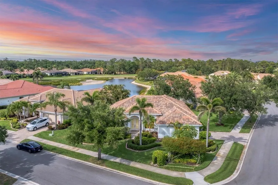 If you’re looking for a vibrant, amenity-rich lifestyle in a beautifully maintained home, this corner-lot property in Pelican Pointe Golf & Country Club is your ideal match. Tucked inside one of Venice’s most active and welcoming gated communities, this home offers stunning lake and golf course views, elegant curb appeal, and access to a wide range of social, recreational, and wellness amenities designed for active living.