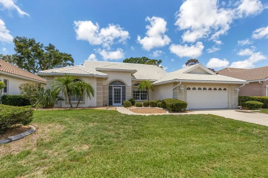 SPACIOUS OPEN VIEWS OF POOL, YARD, TREES, GOLF COURSE and LAKE. 3BD/2BA great room floor plan. Lots of space in this beautiful, well maintained original owner home. Nice and bright with tons of windows and sliders, plus Sunset exposure for spectacular views. Large lanai with plenty of room for various options, dining table, sitting area, and plenty of lounging space all around your own PRIVATE POOL. Kitchen offers tons of wood cabinets and Corian counter space. 2 large pantries and desk space. Large breakfast nook overlooking the pool and view. Bar counter for eating or entertaining. NEWER Stainless Steel appliances. Separate dining room for more formal occasions. Split floor plan. Extra spacious master bedroom with lounging alcove for reading or relaxing. En-suite master bath with dual sinks, walk in shower, and Jacuzzi tub. Walk in closets. Guest bedrooms on other side of home for privacy can be closed off with pocket door , guest bath between. PROPERTY HAS BEEN RE-PLUMBED. AC 2022. Pelican Pointe is Venice's Premier community offering resort style amenities including Clubhouse with bar/grill, card room/library, and banquet facilities. Heated pool with lap lanes for swimming, fitness center, tennis courts and pickle ball, tons of sidewalks for enjoying the weather throughout the community, and 27 holes of golf with Pro Shop. Tons of social opportunities for non golfers, including trivia night, special occasion activities, and huge Women's association. Golf is NOT mandatory. All of this Centrally located minutes to Venice Beach, Venice Downtown, shopping, theatres, restaurants, highways, airports, and so much more. Venice is the quaint gem you have been looking for on the West Coast. See this home and find YOUR Florida Lifestyle today.