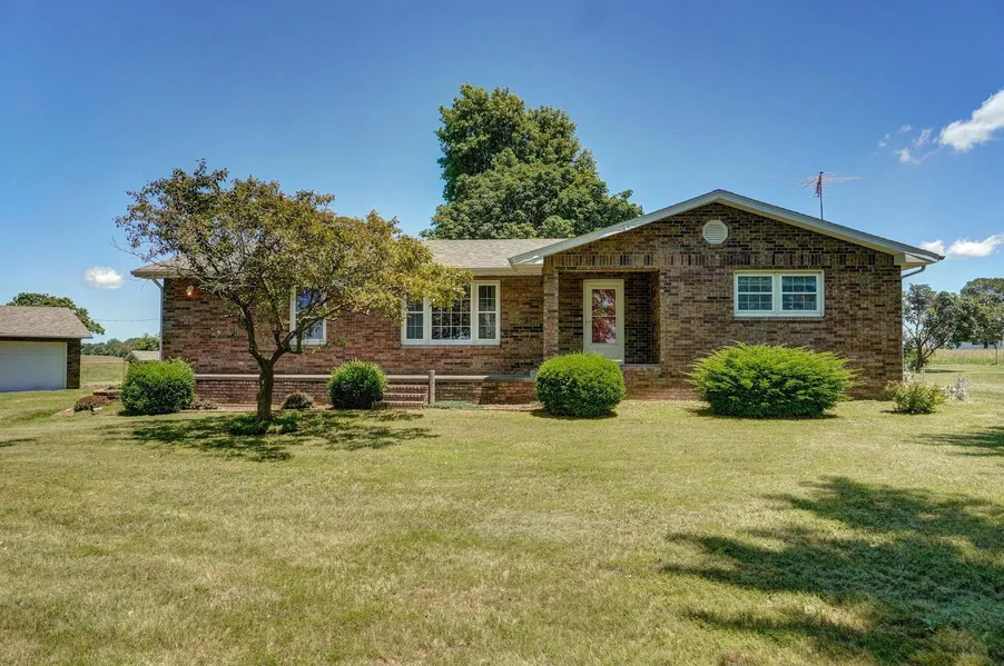 Come check out this all brick home. Great curb appeal. Fantastic landscaping. Garden spot. Great location. Setting on around 7 acres M/L . Over 1600 ft.. Three bedrooms 2 1/2 baths. very large living room. Nice kitchen with lots of storage. Home has Newer windows. Roof on Home and garage New Dec. 2024. Covered back sunporch. Also Cellar/Storm shelter underneath. Office with half bath. Nice big shade trees Beautiful views, Give it a park like setting. Sets back off the road. Outside woodstove heats the home and hot water. Detached two car garage that matches the house. an nice shed with concrete floor and electric. And a large barn that will even hold a fifth wheel camper/motorhome and more. Just minutes from the Monett Hospital. AT THIS PRICE HOME IS SOLD AS IS !!!!