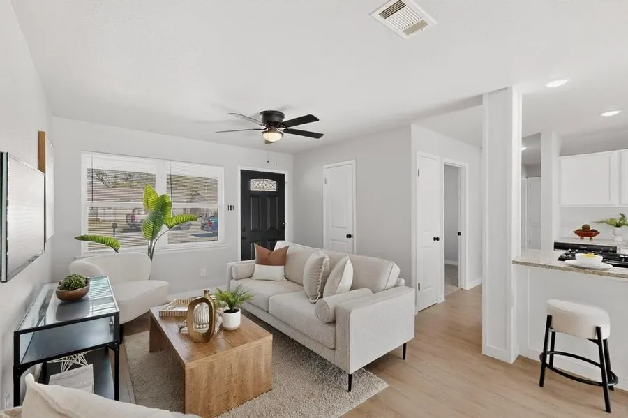 Welcome to this beautifully remodeled 3-bedroom, 2-bath home in the heart of Watauga. Fully updated from top to bottom, this residence showcases all-new interior finishes, modern flooring, fresh paint, and a bright, open layout ideal for everyday living. The redesigned kitchen offers granite counters, crisp white cabinetry, and seamless flow into the living and dining areas. The primary suite features a private ensuite bath with contemporary upgrades and a clean, modern aesthetic. Secondary bedrooms are well-sized with excellent natural light. Outside, the oversized backyard provides exceptional space for outdoor entertaining, play, gardening, or future enhancements. With its move-in-ready condition and thoughtful renovations throughout, this home delivers style, comfort, and convenience in a prime location close to shopping, dining, schools, and major highways.