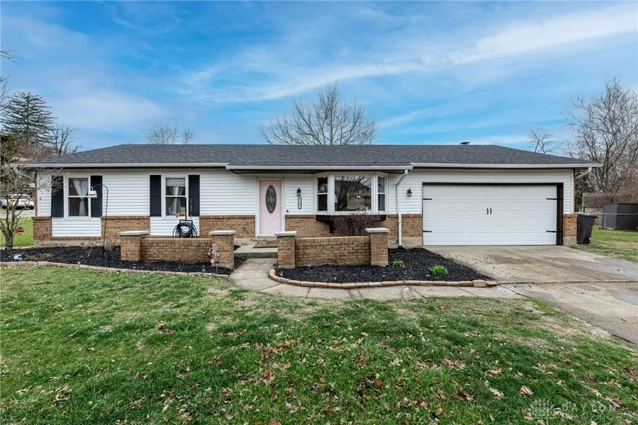 Stunning ranch on a coveted corner lot with a massive, fully fenced yard! Soaring vaulted ceilings and an open-concept floor plan create a bright, airy feel perfect for entertaining or relaxing. The kitchen, featuring an island, newer range, and dishwasher, opens seamlessly to the family room, making it ideal for gatherings. The primary bedroom includes a spacious walk-in closet for ample storage. Recent updates include a 2022 heat pump, updated electrical, a 2024 sliding glass door to the backyard, and in 2025, the hall bathroom shower and tub were replaced along with toilets in both bathrooms. Set on a HUGE lot with endless outdoor possibilities and complete privacy, this home perfectly blends style, comfort, and modern functionality. Home includes a 2nd parcel located to the right of the home. Location, convenience, and lifestyle! This home is close to area parks, local dining and shopping favorites, and offers easy access to I-75, making commuting a breeze. Enjoy the perfect balance of a quiet, welcoming neighborhood with all the amenities of the Dayton area just minutes away.