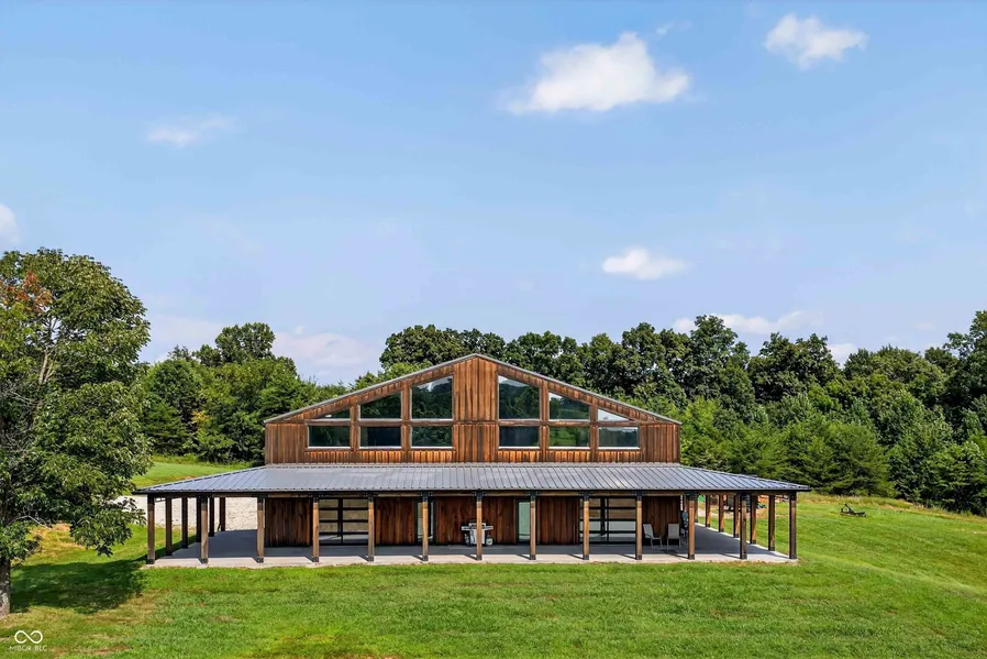 You will not find another BARNDOMINIUM in Southern Indiana like this... PLUS seller is open to TRADE! This one-of-a-kind find offers over 10,000 sq. ft. with an exquisite FOUR bedroom, 2.5 bathroom situated on 77.71 acres, offering the perfect balance of modern engineering, energy efficiency, and outdoor adventure. Built on a 6-inch concrete slab with steel beam construction and spray foam insulation (R-35+ rating), this home was designed for strength, comfort, and longevity. Inside, you'll find an open-concept great room featuring exposed steel beams for architectural detail, a rare oversized fireplace insert, and a dramatic industrial ceiling fan as the centerpiece. The kitchen and dining area flow seamlessly offering a great gathering space with garage doors and windows to create additional space connected to the covered outdoor area. Down the hall, you will find the primary suite inc...