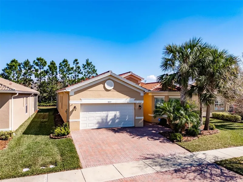 Make your dream your reality in this beautifully upgraded BARBADOS model located in Valencia Lakes, Tampa Bay’s premier 55+ active adult community. Built in 2018 by GL Homes, this well-maintained home offers 2,271 SF with 3 bedrooms, 2.5 baths, formal dining, great room, dinette, covered lanai, and an exceptional 3-car tandem garage. The exterior features a barrel tile roof, whole-house gutters, hurricane shutters, and a full-width paver driveway. The upgraded garage boasts 10’ ceilings, two overhead storage racks, a custom floor-to-ceiling storage rack, and luxe epoxy flooring—perfect for hobbies or prized vehicles. Inside, the welcoming foyer showcases a dramatic 13-14’ tray ceiling with designer pendant lighting. Bedroom 2 offers comfort and privacy at the front of the home with a ceiling fan, recessed lighting, plantation shutters, and a large window for natural light while Bedroom 3—currently used as an office—features double French doors, porcelain tile, walk-in closet, and custom lighted wall unit. The spacious primary suite includes dual walk-in closets, recessed lighting, ceiling fan, plentiful windows, plantation shutters and a luxurious ensuite bath with separate quartz vanities, Kohler fixtures, a large glass walk-in shower with bench, linen closet, and private water closet with KOHLER Sterling comfort-height commode. The dining room is perfect for entertaining, seats eight and the chef’s kitchen features cherry-stained solid maple cabinetry, 42” uppers with under/over lighting, pull-out shelving, quartz counters an additional RO faucet, DELRAY brick mosaic backsplash, and a large island with seating for four. The great room impresses with a 10’-11’tray ceiling, ceiling fan, recessed lighting and 14’ sliders to the roomy private L-shaped lanai which is pre-plumbed for an outdoor kitchen and surrounded by natural greenery - a great way to start and end your day!