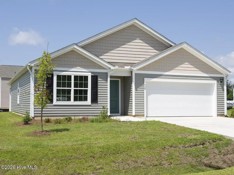 NEW HOME IN RICHLANDS, NC. The Cali floor plan is a thoughtfully designed single-level home offering 4 bedrooms, 2 bathrooms, and a 2-car garage. At the front of the home, three secondary bedrooms share a full bathroom, providing flexibility for guest space, a home office, or creative use. The open-concept family room, dining area, and kitchen create the central living space, highlighted by granite countertops and stainless steel appliances, including a smooth-top range, dishwasher, and overhead microwave. Throughout the home, craftsman-style molding adds detail and character, elevating the design. The private Primary Suite, located at the rear, offers a generous walk-in closet and a spacious bathroom with dual vanities and a walk-in shower. With its functional layout and open living areas, the Cali provides a versatile design that fits a variety of lifestyles. Driftwood is located less than 3 miles from Hwy 258, giving you a peaceful Richlands setting with easy access to Jacksonville, Camp Lejeune, and surrounding communities. Shopping, dining, and grocery options are all close by, while local attractions such as Huffman Vineyards and the Onslow County Museum offer opportunities to explore. Outdoor enthusiasts can enjoy Richlands Steed Park, which features walking trails, athletic fields, and recreational facilities. Our homes also include Home Is Connected(R) Smart Home Technology, an industry-leading suite of smart features designed to enhance convenience and security. Standard features include a touchscreen interface, a smart switch, a video doorbell, front door light, smart thermostat, smart garage door opener, and keyless entry - all easily managed with your smartphone or voice commands. Photos are for illustrative purposes only. Interior and exterior features, options, colors, and selections will vary from the homes as built.