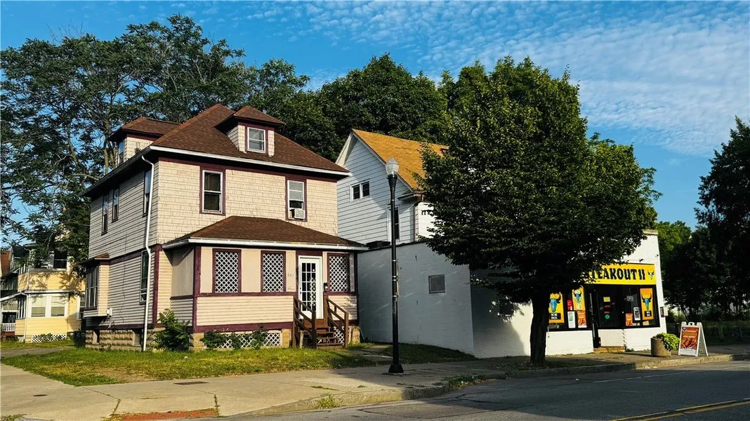 Here is the a great chance to get this Wonderful property in a prime location. There is a Hotel, a College & Campus, a Hospital, a Park and the Airport all within range of this location. There is a living room, dining room, full bathroom, Kitchen on the 1st floor, unfinished Full basement, 3 bedrooms upstairs on the 2nd floor and an unfinished full attic in the stand alone house. There is a 1 story store front that is currently occupied and a 3 bedroom house attached in the back that has a living room, dining room, powder room, kitchen on the 1st floor and 3 bedrooms and a full bath upstairs, a full unfinished basement and a full partially finished attic, there is ample parking in the back for the residents and parking in the front of the store for customers.