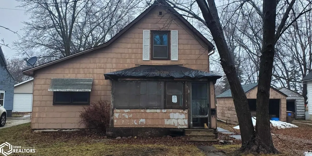 This neat house needs emptied out and a few repairs and updates, but is dry other than bad roof over the front porch, and livable. Nice big rooms, desirable floor plan with a bedroom and full bath on the main floor. Big level lot. Lots of plusses, bargain price on this one!!
