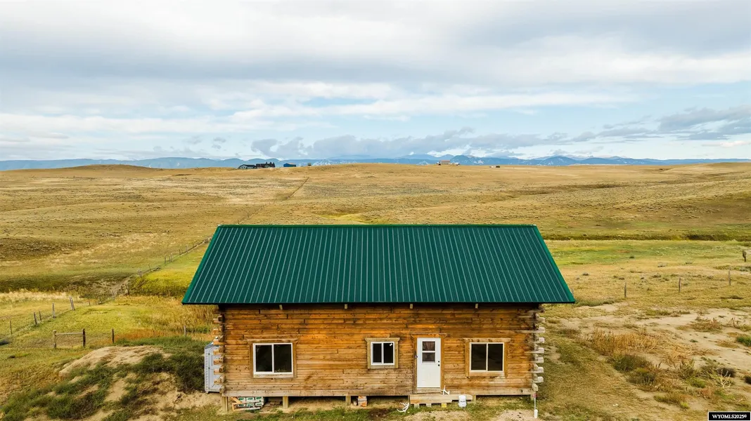 Call/Text April Poley with EXP Realty at 307-622-8993. Escape to Wyoming's wide-open spaces with this Amish-built Swedish cope-style log home, perfectly set on 38 acres just 17 minutes from downtown Buffalo. With soaring windows framing stunning views of the Bighorn Mountains, wood floors, and a loft, this home offers timeless craftsmanship and a warm rustic feel. Inside, the open layout is a blank canvas—ready for you to design and finish to your vision. Outside, the property is fenced, with a cattle guard at the entry, making it ideal for livestock or horses. A private well powered by solar ensures reliable, off-grid living. Whether you're seeking a serene homestead, a weekend retreat, or a basecamp for Wyoming adventure, this property combines self-sufficiency with mountain beauty in one unmatched location.