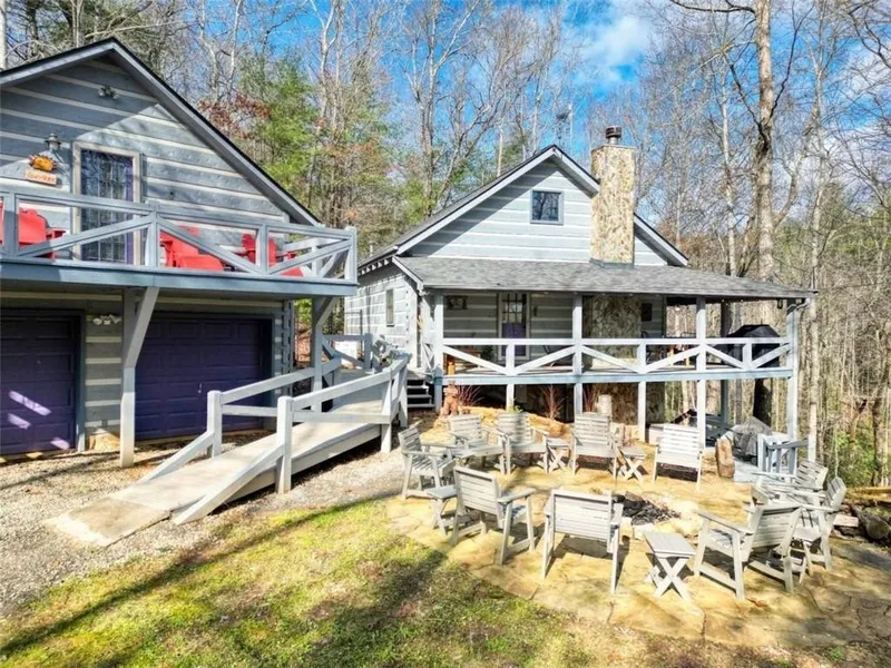 Welcome to your storybook log cabin in the heart of the Aska Adventure Area-where the forest is your neighbor, the river is your playground, and every corner feels touched with a little magic. Tucked away at the end of a quiet cul-de-sac and backed by USFS land, this cabin is as private as it is charming. And yes, it even comes with deeded access to the sparkling Toccoa River-because what's a mountain escape without a river to wander to? Step inside and let the warmth wrap around you. Cathedral ceilings soar above, rustic beams stretch across, and a grand stone fireplace promises crackling fires and cozy evenings. The kitchen is a delight, with granite countertops, a farmhouse sink, a center island, and not one but two pantries (because every fairytale cabin needs room for cookies and cocoa). The layout unfolds like chapters in a book: A main-level bedroom and bath for easy living. An upstairs loft with its own bedroom, bath, and a tucked-away office nook. A terrace level with two more bedrooms, a family/media room, and storage for all your adventures. But the magic truly sparkles outdoors: sip morning coffee on one of the two covered porches, linger over candlelit dinners beneath a chandelier on the deck, sway away your worries on the hanging swing, soak them in the jacuzzi next to the expansive forest or gather everyone around a fire pit that's big enough for the whole village (s'mores required). The fun doesn't stop there-the two-car garage has been reborn as a lively game room, and above it awaits a private 1BR/1BA suite with its own kitchen and a fireplace, the coziest perch for guests or in-laws. Even the carport has personality-it's the perfect rainy-day spot for hoops or cornhole. And here's the cherry on top: this gem comes fully furnished and move-in ready. Just bring your bags, your people, and your sense of wonder mountain life is waiting.
