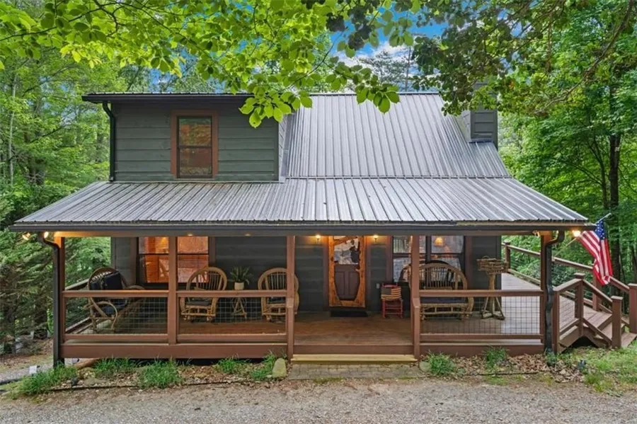 A peaceful lakeside escape awaits in this charming mountain cabin just inside Walnut Mountain. Whether you're seeking a quiet getaway or an adventure-filled retreat, this beautifully crafted home blends rustic warmth with modern comfort and resort-style amenities. Wrapped in classic wood siding with a metal roof and spacious wrap-around porches, the cabin invites you to embrace outdoor living. Grill on the deck, unwind in the hot tub with a glass of wine, gather around the fire pit, or follow the path to the nearby pond. Multiple outdoor dining and lounging areas make it effortless to enjoy the mountain setting. Inside, warm wood accents greet you as you enter the spacious living area with stunning stacked stone fireplace and vaulted ceilings, creating the perfect cabin ambiance. The kitchen features custom cabinets, leathered granite countertops, stainless steel appliances, and a coffee bar. The main level also includes a designated dining nook, queen bedroom and full bath, plus access to the large screened-in porch and open deck. The top floor loft area overlooks the great room and has custom twin bunks and a futon for additional sleeping. The spacious upper master suite is perfect for relaxation with vaulted ceilings and an ensuite with jacuzzi bath and separate tiled shower. The fully finished terrace level adds even more space with a second living area, stone fireplace, arcade games, and a bedroom offering a queen bed, bunk bed, and full bath. This cabin comes fully furnished with upscale dcor and fixtures included, perfect for immediate enjoyment or a turn-key rental opportunity. Walnut Mountain offers lakes, hiking trails, tennis and basketball courts, a community pool, and more, all just minutes from downtown Ellijay, local wineries, orchards, and outdoor adventures. A welcoming, well-appointed mountain retreat-ideal as a full-time home, vacation escape, or proven investment property.