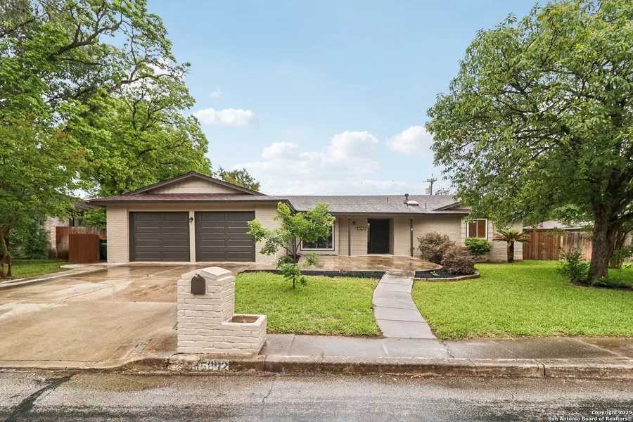 This beautifully updated single-story home sits in San Antonio's desirable Hidden Forest neighborhood. Nestled on a spacious, tree-filled lot, it blends inviting living spaces with a warm community vibe. A generous front patio welcomes you, ideal for morning coffee or evening chats. Inside, the great room boasts a picture window and fireplace, seamlessly connecting to the family and dining areas-perfect for daily life or entertaining. The bright, open kitchen features ample counter space, a new stainless-steel refrigerator, and a dishwasher. Outside, a massive 30-by-30-foot covered patio awaits, great for year-round gatherings. Freshly painted inside and out with a new roof, this home is move-in ready. Hidden Forest, tucked off 281 and Bitters, centers around top-rated Hidden Forest Elementary, offering walkable access for families. Community amenities include tennis and pickleball court...