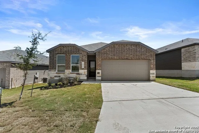 The Navarre- This new single-level home boasts a modern and low-maintenance design. Three secondary bedrooms are located off the foyer, with a nearby study perfect for focusing on important tasks throughout the week. An inviting open-concept living area combines the kitchen, living and dining areas, with a nearby covered patio ready for outdoor entertainment and leisure. A lavish owner's suite completes the home, offering direct access to an en-suite bathroom and generous walk-in closet. *Seller is willing to assist with closing costs or a rate buy-down through preferred lender with an acceptable offer.