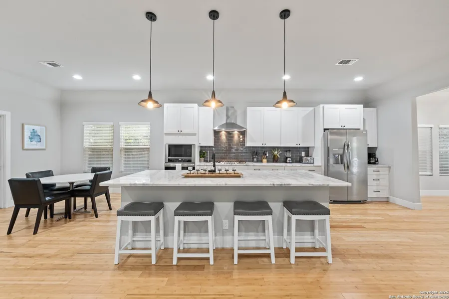 Welcome to 422 E. Woodlawn Ave., an extraordinary Craftsman-style cottage nestled in the heart of San Antonio's desirable 78212 zip code. This home is an exquisite blend of classic charm and modern elegance and was completely renovated and restored in 2021. The spacious open floor plan spans 2,786 sqft. and features an elevated, gourmet kitchen with quartzite countertops, custom cabinets, stainless steel appliances, and a gas cooktop. Exquisite white bamboo flooring extends throughout the property, unifying each room with a sleek and contemporary aesthetic. The luxurious primary suite offers tranquility and comfort complete with an en-suite bath featuring dual vanities, an oversized walk-in shower and a large walk-in closet. There are 3 additional spacious bedrooms plus two secondary bathrooms showcasing designer fixtures and modern designer tile. The dedicated laundry room is a must see! Outdoors, you'll find an inviting back patio perfect for relaxing and entertaining guests along with a covered front porch to enjoy peaceful Texas sunrises and sunsets. A dedicated gate adds an extra layer of privacy. Located just minutes from The Tobin Center, Trinity University, the Pearl Brewery, and the Quarry Market, this location offers endless options for dining, shopping, and entertainment. Enjoy trendy restaurants offering live music or unwind at one of the many nearby coffee shops. Minutes to walking and bike trails. San Antonio's vibrant culture can be experienced through its historic sites such as the Alamo or take advantage of the city's natural beauty by exploring the River Walk or Brackenridge Park. This home combines luxury living with a local, cozy neighborhood feel making it truly one-of-a-kind!