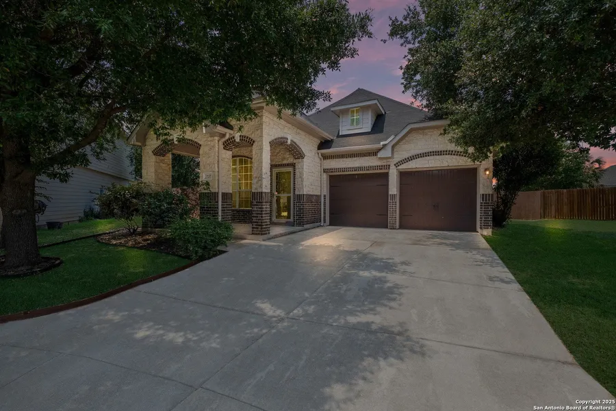 Charming Single-Story Home in Gated Community - Move-In Ready! Discover this beautifully maintained 3-bedroom, 2-bathroom home located on a quiet cul-de-sac in a desirable gated neighborhood. This inviting property features 9-foot ceilings, espresso hardwood floors, recessed lighting, and elegant finishes throughout. Enjoy a bright, open living space highlighted by a large arched window and a champagne remote-controlled ceiling fan that adds style and comfort. The kitchen is a true standout with ample cabinetry, stainless steel appliances, a central island, nickel-finished pendant lighting, and a refrigerator included-perfect for move-in convenience. The spacious primary suite offers a modern remote-controlled ceiling fan, walk-in closet, and a luxurious bath with dual vanities, a deep garden tub, and a separate walk-in shower. Two additional bedrooms include carpeted flooring, ceiling fans, windows, and generous closet space. The outdoor area is fully equipped for enjoyment with pergola, covered patio, and a storage shed-ideal for relaxing or entertaining.