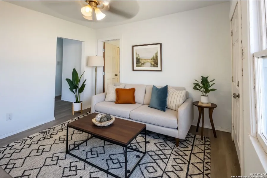 3017 Colima offers a great opportunity for affordable homeownership just minutes from downtown San Antonio. This cozy 1-bedroom, 1-bath home sits on a fully fenced lot with mature trees and a flexible layout ready for your finishing touches. Some updates-like flooring and plumbing-have already been completed.