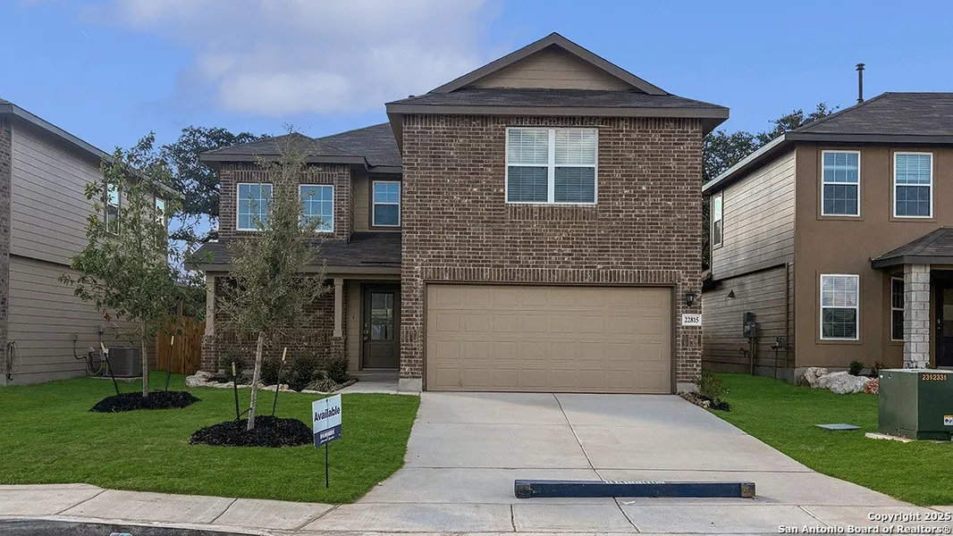 The Bowen is a 2-story home featured at Langdon in San Antonio, TX. The Bowen is sure to stand out with three classic front exterior, 3 bedrooms, 2.5 bathrooms and 2-car garage spread across 2241 square feet of living space. Usher guest through a covered front porch (per plan) and into a front foyer which leads into a grand, open-concept living, dining, and kitchen with tons of cabinet storage and quartz countertop space. Your kitchen also includes a spacious kitchen island, stainless steel appliances, classic white subway tile backsplash, and a deep single basin kitchen sink that faces a large window overlooking your fully landscaped and irrigated backyard. The second story opens into a large and versatile loft space with plenty of natural light, an upstairs utility room, a full bath, and all three bedrooms. A decorative nook located off the stairway guides you to the large main bedroom and ensuite bathroom, secluded from the other bedrooms. Your main bedroom features a semi-vaulted ceiling, a separate garden tub, a tiled walk-in shower, double vanity sinks, and a spacious walk-in closet. The Bowen floor plan is perfect if you want a place to entertain downstairs and a private retreat to relax in upstairs. Additional features include, 9-foot ceilings, 2-inch faux wood blinds throughout the home, luxury vinyl plank flooring in entryway, living room, kitchen, and dining area, ceramic tile at all bathrooms and utility room, pre-plumb for water softener loop, and a relaxing covered back patio (per plan) located off the living room. You'll enjoy added security in your new home with our Home is Connected features. Using one central hub that talks to all the devices in your home, you can control the lights, thermostat and locks, all from your cellular device.