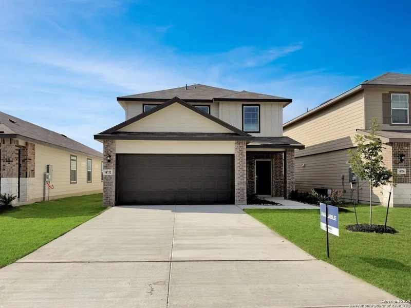 Step inside The Nicole plan, a two-story home featured in Riverstone at Westpointe in San Antonio, TX. Featuring 2 classic front exteriors, 4 bedrooms, 3 full baths and a 2-car garage, this floor plan is sure to turn heads. The Nicole offers 2473 square feet of comfortable living and includes a full bathroom and bedroom located right off the foyer that is perfect for guests. Continue down the hall to find an open concept plan with the family room opening to a gourmet kitchen and dining room. The kitchen includes quartz counter tops, stainless steel appliances, shaker style cabinetry and a spacious corner pantry. A kitchen island overlooks the living room and includes a deep, single basin sink and a breakfast bar, perfect for fast mornings on the go. The wide, inviting staircase leads to a spacious game room, utility room, main bedroom suite, two secondary bedrooms with carpet flooring and spacious closets and third full bathroom. Your private main bedroom features an attached ensuite bathroom built with plenty of storage space, a walk-in shower and a separate water closet for the toilet. The grand walk-in closet is a stand-out feature of The Nicole floor plan, complete with plenty of windows for natural lighting. Additional features of The Nicole include sheet vinyl flooring in entry, living room, and all wet areas, quartz counter tops in all bathrooms, and full yard landscaping and irrigation. This home includes our HOME IS CONNECTED base package. Using one central hub that talks to all the devices in your home, you can control the lights, thermostat and locks, all from your cellular device.