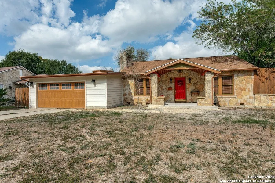 Discover timeless character and modern comfort in this beautifully preserved historic home in Olmos Park Terrace. Showcasing a distinctive rock exterior, this 3 bedroom, 2 bath home blends classic charm with thoughtful updates. Step inside to a warm, inviting living room with original wood floors and a wood-burning fireplace, creating the perfect setting for relaxed evenings. A separate dining room offers an elegant place for gatherings, while the adjacent kitchen with breakfast bar, stainless appliances and charming lapis blue tile counters is ideal for everyday cooking and entertaining. Enjoy multiple outdoor living areas, including a covered front porch with a cozy swing, a sizable covered back deck and a private side patio. Rich in character and wonderfully appointed, this home is welcoming and full of history.