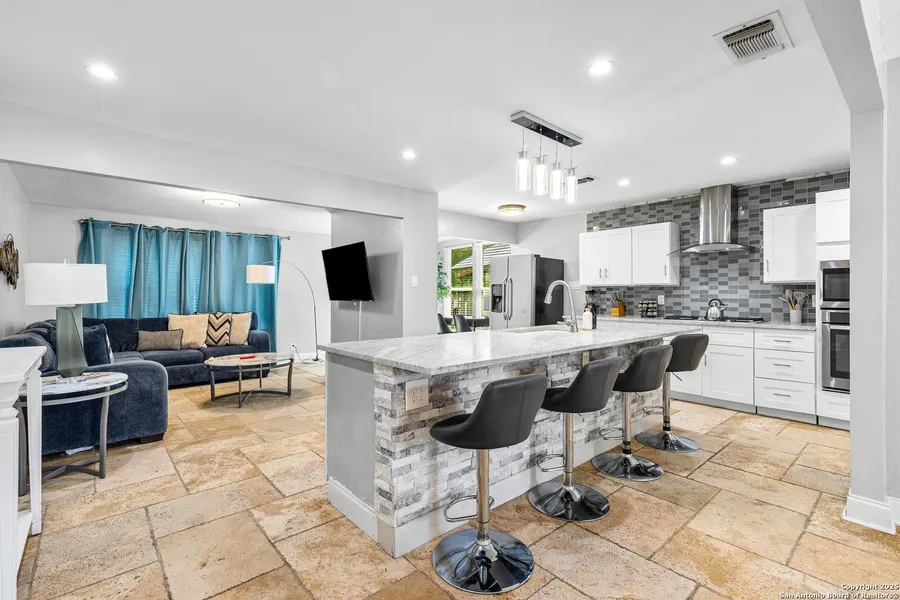 Evening Open House, Thursday OCT 30th 5pm-7pm. Perched on a spacious 0.26acre lot shaded by mature trees in a quiet, established neighborhood, this updated single story home is a modern retreat minutes from the Medical Center and Highway 410 - and a prime candidate for year round Airbnb bookings. Inside, the bright open floor plan flows effortlessly from living room to dining to kitchen, where a stunning, oversized island anchors the space with bar seating and gas cooking. Natural light washes across elegant stone floors and crisp, contemporary finishes, giving every room a clean, inviting feel. Four bedrooms and two sleek baths with walk in showers provide comfort and flexibility, while bonus areas can easily become a game room, office, or kids' space. Recent upgrades - including a 2022 HVAC replacement, spray foam insulation, updated breaker boxes, and a water softener - add longterm value and peace of mind. Step out back to an expansive yard with a patio seating area, mature trees, and a full sprinkler system front and back. With its prime location and move in ready design, this home is priced to sell and an obvious choice for buyers seeking a seamless blend of comfort, convenience, and investment potential.