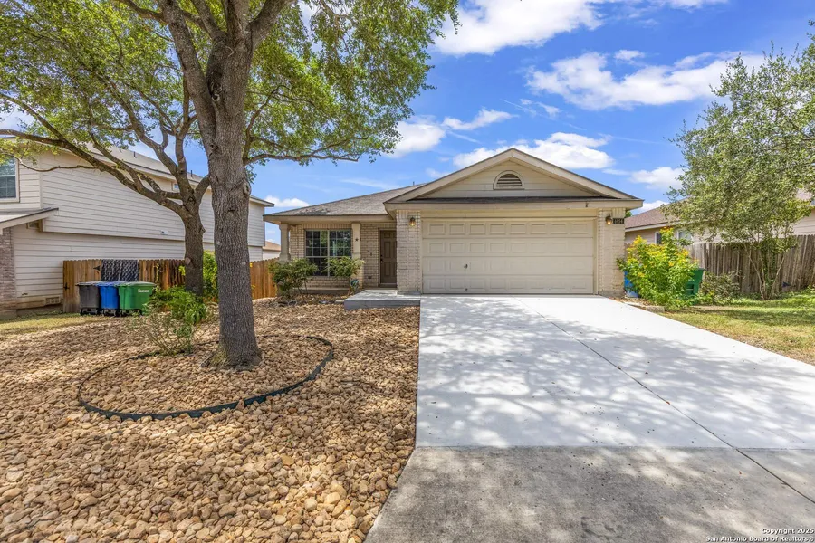 Discover this inviting home located just minutes from Randolph Air Force Base. Recent updates include fresh interior paint, a new privacy fence, and xeriscape landscaping for easy maintenance and curb appeal. Inside, the family room opens to the dining area, creating a spacious and connected living space. The oversized kitchen features an island, ample cabinet space, and flows into a bright breakfast nook - perfect for casual meals. The primary suite is tucked away at the rear of the home for added privacy and includes a separate shower, garden tub, and a generous walk-in closet. This home offers comfort, convenience, and thoughtful updates-schedule your showing today!