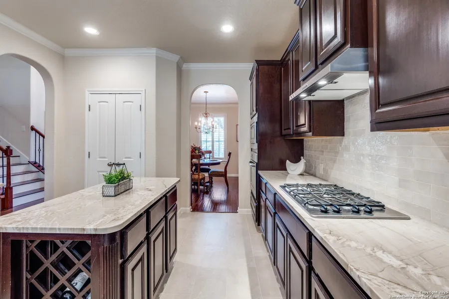 VA ASSUMABLE LOAN FOR QUALIFIED BUYERS W/ LENDER APPROVAL! Fabulous home and location in the beautiful neighborhood of Vallitas at Cibolo Canyons. This welcoming 5 bd/4 bath home is comfortably sitting on a corner lot with 2 car side garage entrance. Not only pleasing on the outside, but beautiful renovations done throughout. Gourmet Kitchen with gas stove, island, breakfast bar, great appliances, new floor and stunning quartzite countertops. The primary bath remake has a clean, crisp, spa feel with quality quartz countertops, new sinks, mirrors, separate double vanities, new flooring and a beautiful new glass walk in shower. This home has the comforts and beauty of mature trees, front porch, large backyard deck, open floor plan with high ceilings and a large Game Room and coveted location. Location not only coveted for shopping, eateries, PGA golf course and Spa, but located within NEISD! Amenity Center w/ Lazy River Pool, Lg Pool, Covered Playground, Basketball Court, Soccer field, Fitness Center and more!