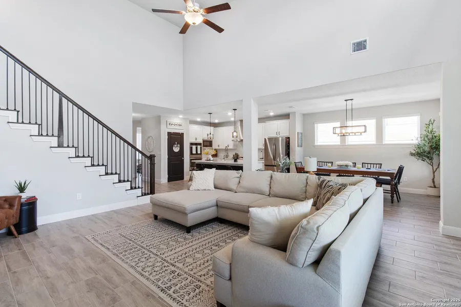 JOIN US FOR AN OPEN HOUSE SUNDAY, SEPTEMBER 21ST FROM 10AM TO 12 PM **$5000 toward closing costs**Stunning 4-Bedroom Home in Weston Oaks | Over 3,000 Sq Ft | 3.5 Baths | 3-Car Garage Located in the desirable Weston Oaks community, this beautifully maintained two-story home offers over 3,000 square feet of well-planned living space, featuring 4 bedrooms, 3.5 bathrooms, and a spacious 3-car garage with convenient overhead storage. The main level showcases stylish and durable wood-look tile flooring and a flowing layout designed for both everyday living and entertaining. The kitchen is a standout, with shaker-style cabinetry, striking black-and-white contrast, a herringbone tile backsplash, stainless steel appliances, double ovens, and a generous breakfast bar. Adjacent to the kitchen, the dining area features large windows and direct access to the covered patio, creating an easy indoor-outdoor connection. The living room impresses with soaring ceilings and ample natural light, enhancing the open feel of the home. The primary suite is located on the main floor and features plush carpet, a custom accent wall, and a beautifully finished en-suite bath complete with a walk-in shower, garden tub, double vanity, and private water closet, all accessed through a modern barn door. Upstairs, you'll find three additional generously sized bedrooms, a full bath, and a versatile game/media room-perfect for relaxation, recreation, or flexible use. A stylish half bath and a well-equipped laundry room with countertop and hanging storage complete the home's thoughtful layout. Step outside to enjoy the covered patio with dual ceiling fans, ideal for warm Texas days, along with a sizable backyard ready for outdoor enjoyment. With its modern touches, functional design, and excellent location, this Weston Oaks home is a must-see. Schedule your tour today!