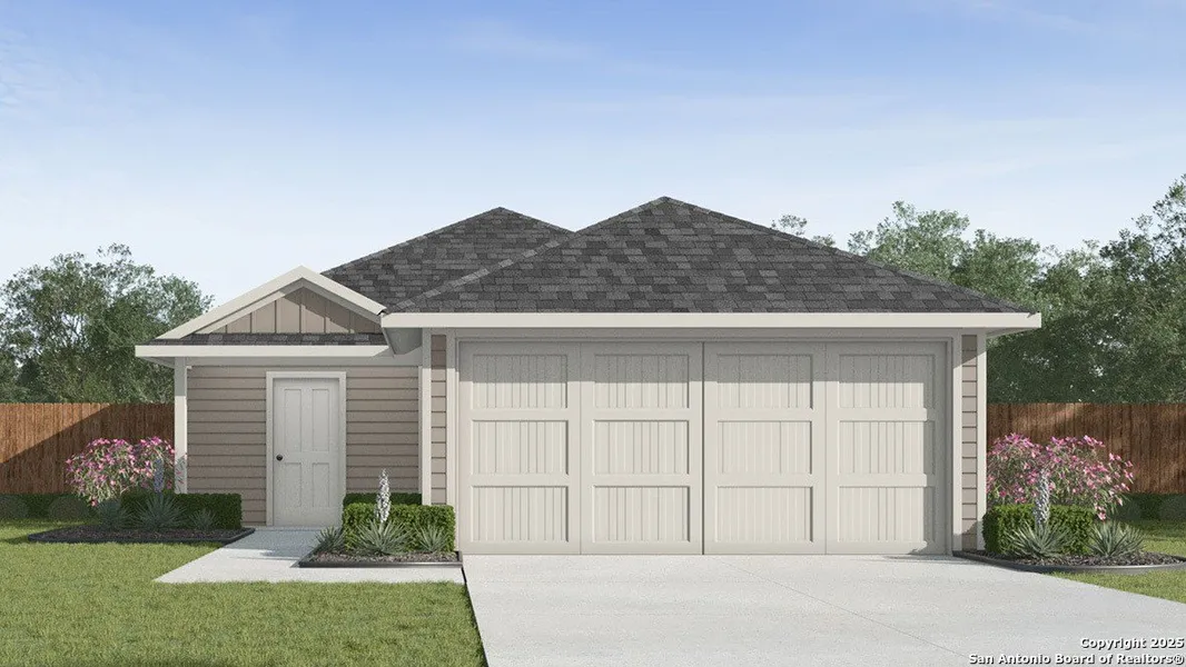 The Estero is a charming one-story home featured in Riverstone at Westpointe in San Antonio, TX. Featuring 2 classic front exteriors, this 4 bedroom, 2 bathroom home also offers 1586 square feet of living space and a 2-car garage. A front porch (per plan) welcomes you into the home and opens to the gourmet kitchen which includes quartz counter tops, shaker style cabinets, stainless steel appliances and an open concept floorplan with the kitchen flowing seamlessly into the dining room and living room. The main bedroom has an attractive ensuite bathroom that features a quartz vanity countertop, shaker style cabinetry and a spacious tiled walk-in shower. Enjoy additional storage with a large walk-in closet in the primary bedroom. Your secondary bedrooms all feature quality carpet flooring and a closet, and can be used as bedrooms, offices, work out spaces or other bonus rooms. The possibilities are endless with The Estero floor plan. Additional features include sheet vinyl flooring in entry, living room, and all wet areas, quartz counter tops in all bathrooms and HOME IS CONNECTED base package. Using one central hub that talks to all the devices in your home, you can control the lights, thermostat and locks, all from your cellular device.