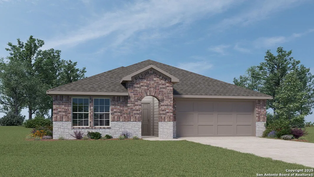 Introducing The Lakeway floorplan, a stunning single story home located in Brookstone Creek in San Antonio, TX. The Lakeway is sure to impress with its classic front exteriors, 2-car garage and 2034 square feet of living space spread across 4 bedrooms, 3 bathrooms and a study. As you enter the spacious foyer you'll see the open study, a guest bedroom, and second full bath at the front of the home. Passing through the foyer, you'll find yourself in the grand combination dining room, kitchen, & living room. The Lakeway kitchen offers quartz countertops, stainless steel appliances, a natural gas cooking range, shaker style cabinets, a corner walk-in pantry and a large kitchen island with a deep, single bowl sink that faces the wide open living room. Located privately off the dining room are the remaining secondary bedrooms and a third full bath. All secondary bedrooms are complete with qual...