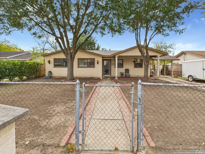 This beautifully updated and well-maintained home is ideally located near West Military Drive, Lackland and Medina Air Force Bases, I-410, and Hwy 90. Offering 3 bedrooms and 2 bathrooms, the home also features two spacious bonus rooms-perfect for additional bedrooms, home offices, or expanded living areas. Ceramic tile flooring runs throughout, complemented by custom-tiled shower enclosures. The primary bedroom and bathroom have been thoughtfully extended to provide extra comfort and space. Both the front and backyard are fully fenced, and a large metal storage shed conveys with the property. This home truly stands out as one of the neighborhood's hidden gems. Attached Carport