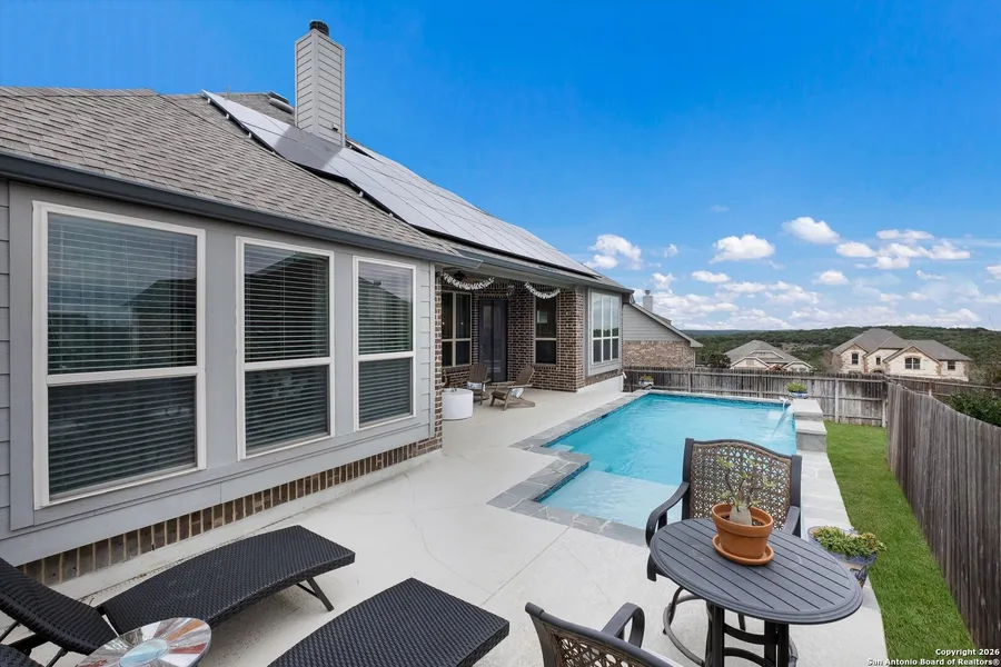 **OPEN HOUSE 1/11 11AM-2PM**Single-story home offering a desirable open floor plan filled with natural light, designed for both comfort and entertaining. The home features 4 bedrooms and 2 bathrooms, 3 car tandem garage, with a spacious primary suite that includes dual vanities, a large soaking tub, and a separate shower. The living room is anchored by a gas-starter fireplace, creating a warm and inviting atmosphere, while the kitchen offers gas cooking and flows seamlessly into the main living areas. The home is equipped with solar panels, providing added energy efficiency and potential cost savings. Step outside to a backyard retreat with a covered patio and in-ground pool, perfect for relaxing or hosting guests. Residents also enjoy access to neighborhood amenities including a clubhouse, pool, park/playground, basketball court, and jogging trails, all within a vibrant community settin...