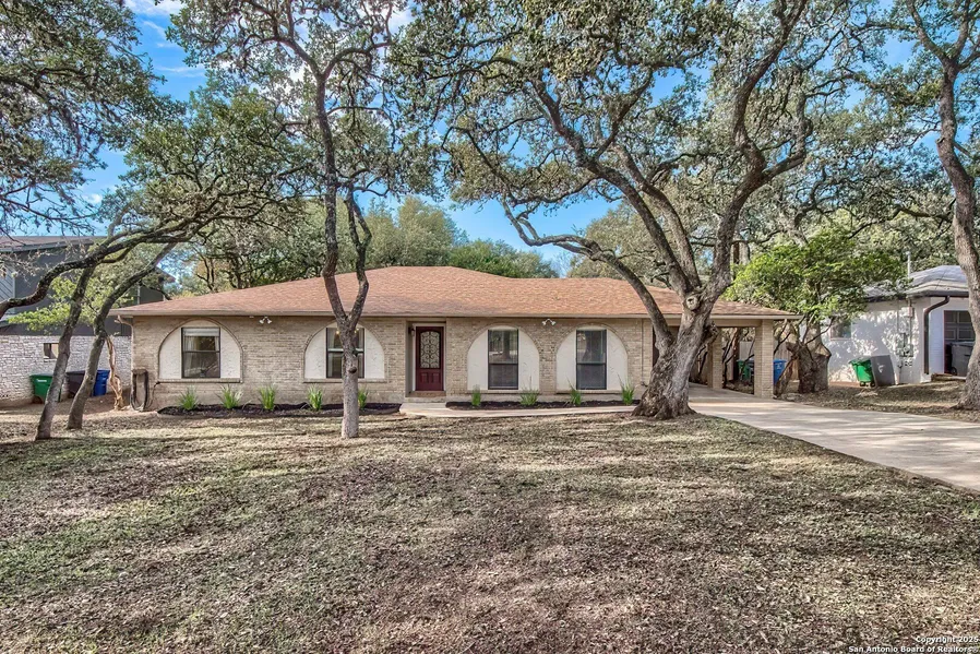 Nestled on a spacious lot shaded by towering oak trees, this inviting single-story home offers a peaceful, nature-filled setting in an established neighborhood with a true country feel. The flexible floor plan features a split primary suite and two dining areas-or the option for two living spaces-perfect for entertaining or everyday comfort. A generously sized mudroom off the laundry room adds versatility and can easily serve as a craft room, workout space, or workshop. MAJOR UPDATES 12-2025: New Roof, Gutters, and HVAC system, offering peace of mind for years to come. The washer, dryer, and two refrigerators convey. The main living area features vaulted ceilings and a striking floor-to-ceiling stone fireplace, creating a warm and welcoming focal point. Step outside to enjoy a dedicated outdoor entertaining area surrounded by mature oaks and abundant wildlife. Oakhaven Heights is a hidden gem, known for its quiet, tree-lined streets, neighborhood park, and tranquil atmosphere. Minutes from shopping, dining, services, and entertainment. Convenient access to 281 & 1604.